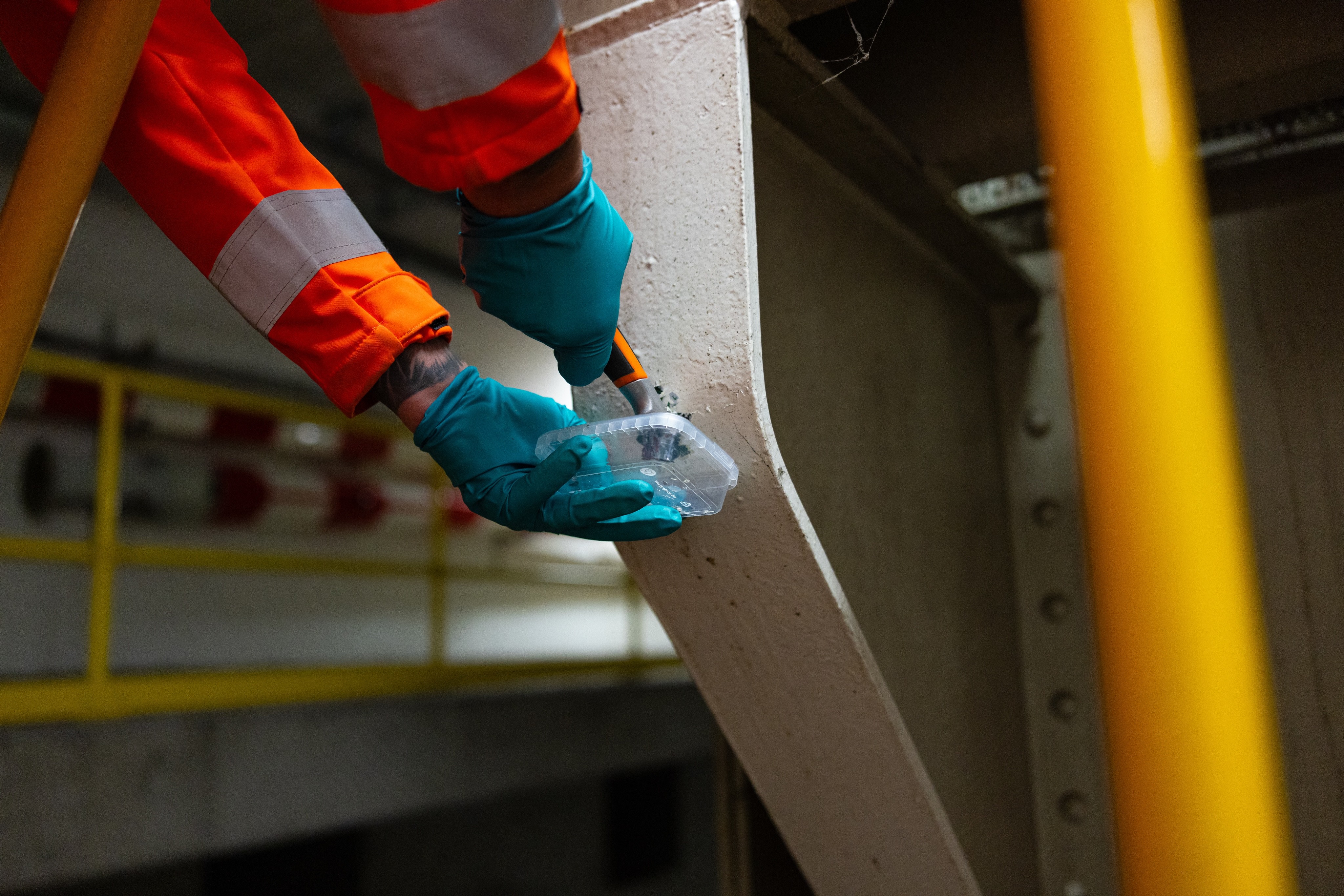Onze specialisten nemen monsters van verf, coating of ondergrond, altijd volgens de geldende veiligheidsrichtlijnen. Elke monsterlocatie wordt vastgelegd met foto’s, notities en unieke codes zodat alle gegevens later eenvoudig te herleiden zijn.